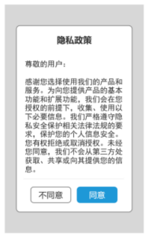 隐私政策授权弹窗示例: